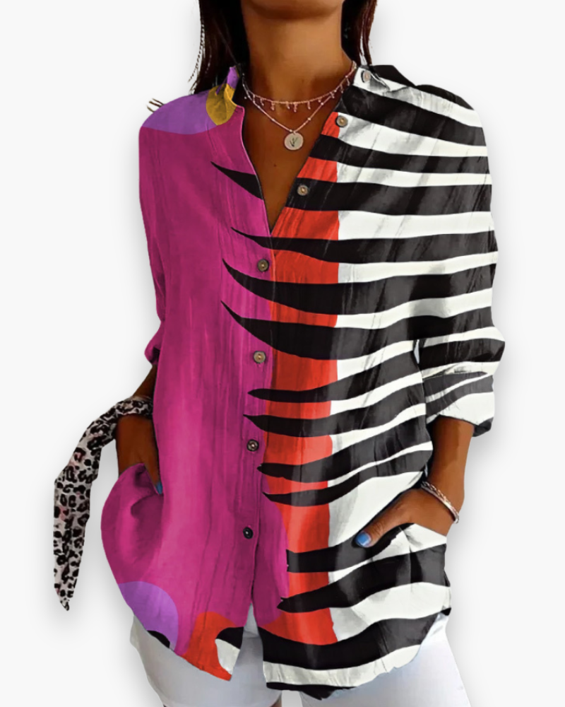 Rehaussez votre garde-robe avec ce chemisier chic pour femmes, parfait pour affirmer votre style grâce à ses motifs imprimés sophistiqués. Conçu pour les femmes modernes qui apprécient l'élégance et le confort, ce chemisier se démarque par sa coupe et son originalité.
