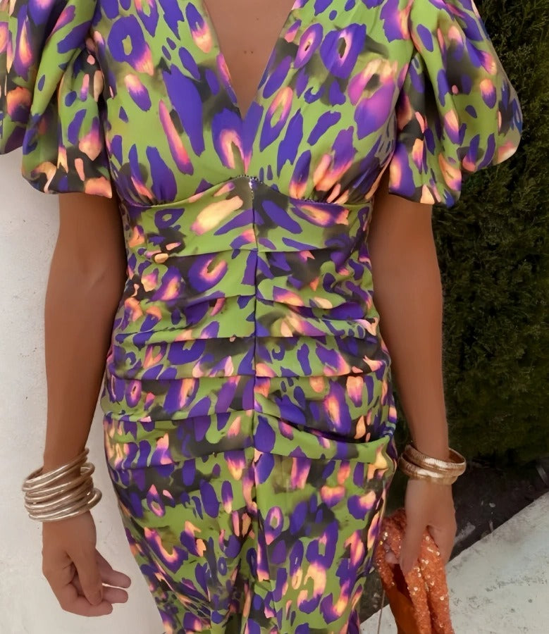 Bata Carol - Estampada, Mangas Abullonadas, Chic