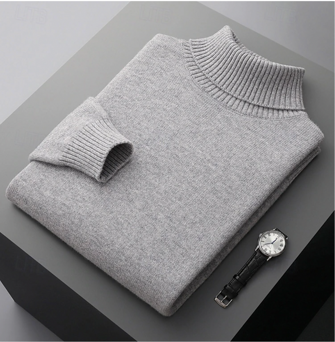Pull col roulé homme, laine mérinos, coupe classique, chaud et confortable.