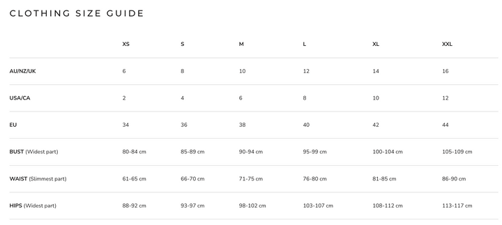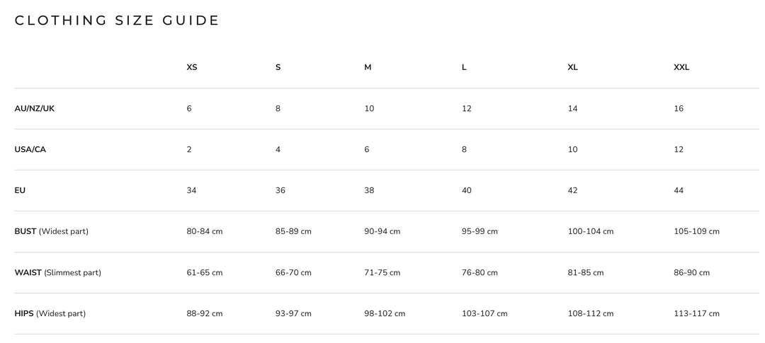 | Taglia | Petto | Circonferenza vita | Lunghezza |