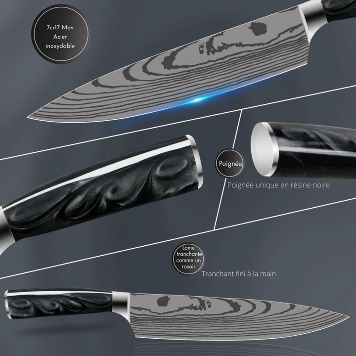 Set Couteaux 10 Pièces - Acier Carbone, Précision, Élégance