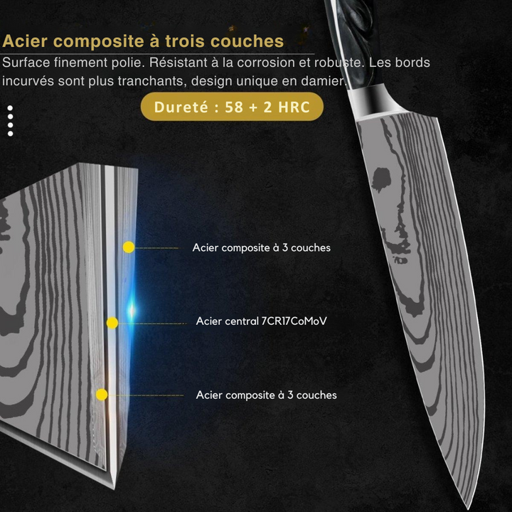 • 10 coltelli inclusi : Chef, Kiritsuke, pane, Nakiri, Santoku, disosso, ecc.