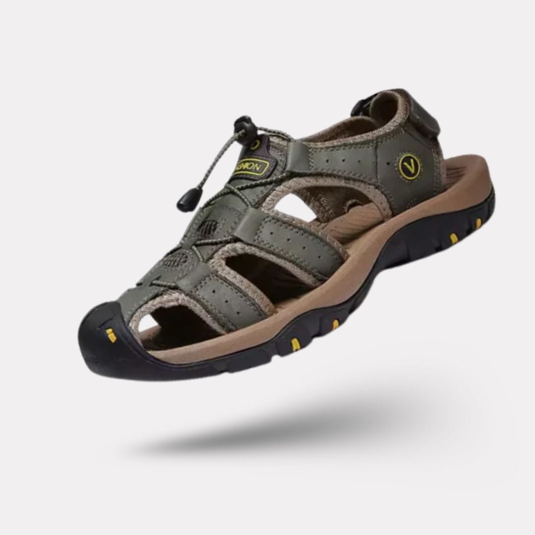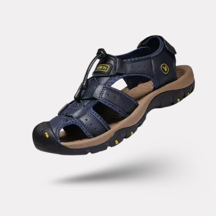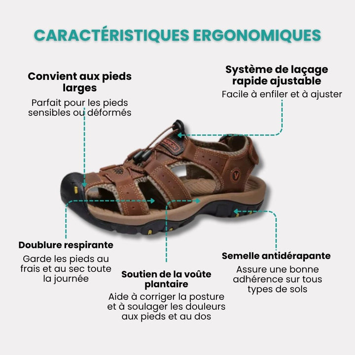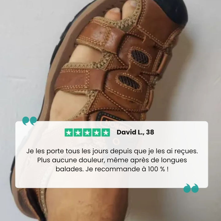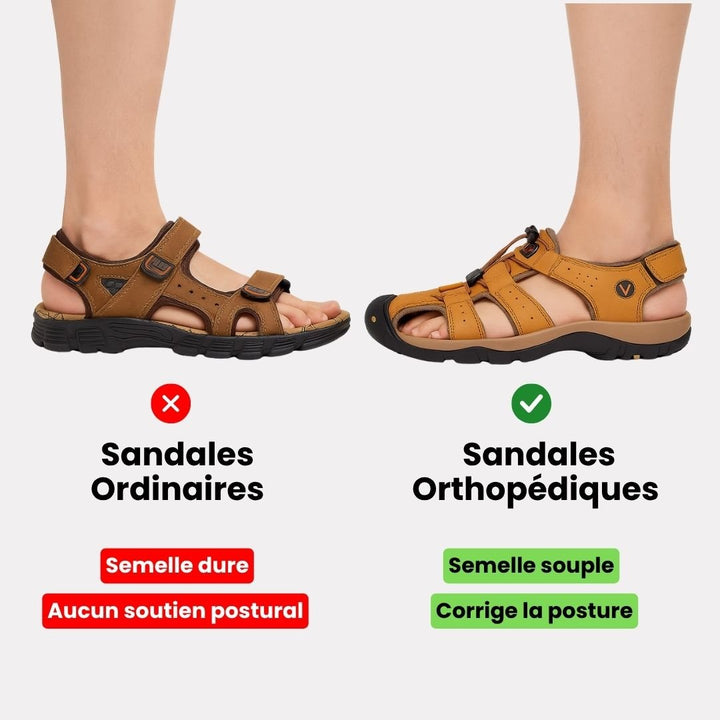 Sandales orthopédiques homme, élégantes, confort exceptionnel, semelle antidérapante, vue de face, soutien voûte plantaire.