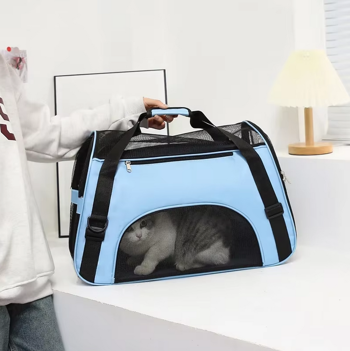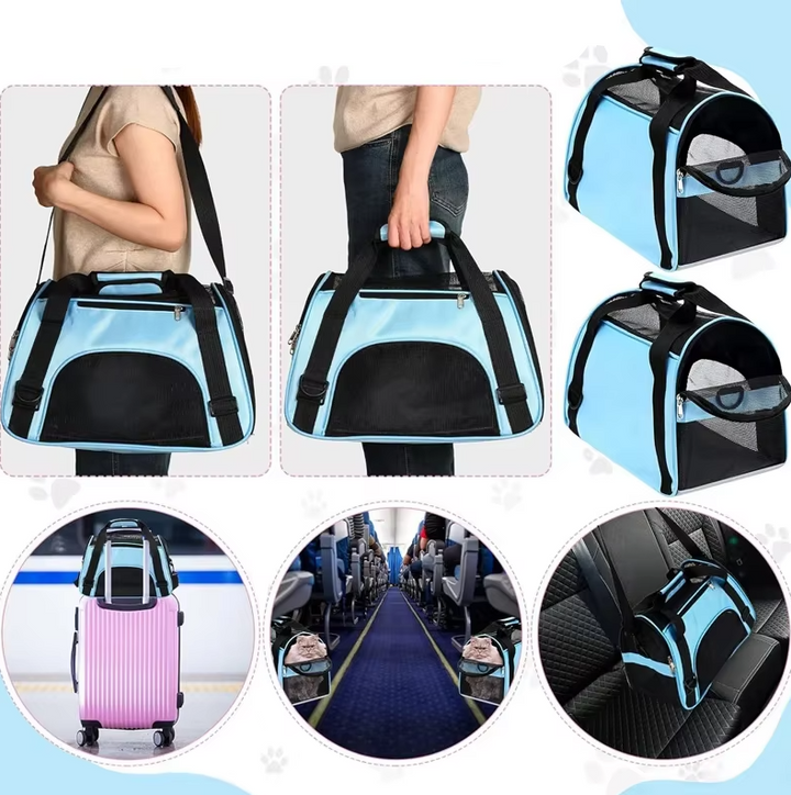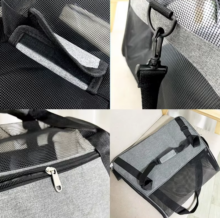 Sac de transport pliable pour chien/chat. Respirant, confortable et sécurisé pour les voyages.