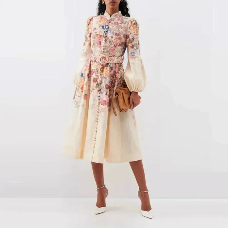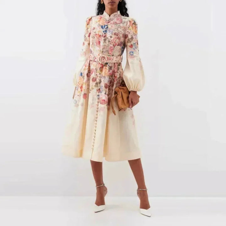 Sukienka Midi w Kwiaty - Elegancka - Styl Romantyczny