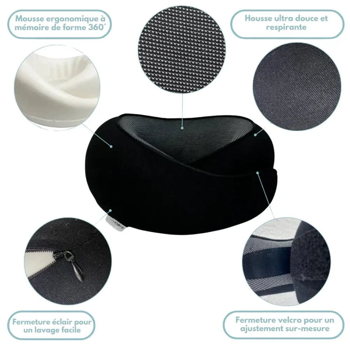 Odkryj najwyższy komfort podczas podróży z naszą unikalną poduszką podróżną. Zaprojektowana tak, aby idealnie dopasować się do Twojej szyi, ta poduszka wykorzystuje piankę z pamięcią kształtu 360°, która otula każdą krzywiznę, zapewniając optymalne wyrównanie i ulgę w napięciach.